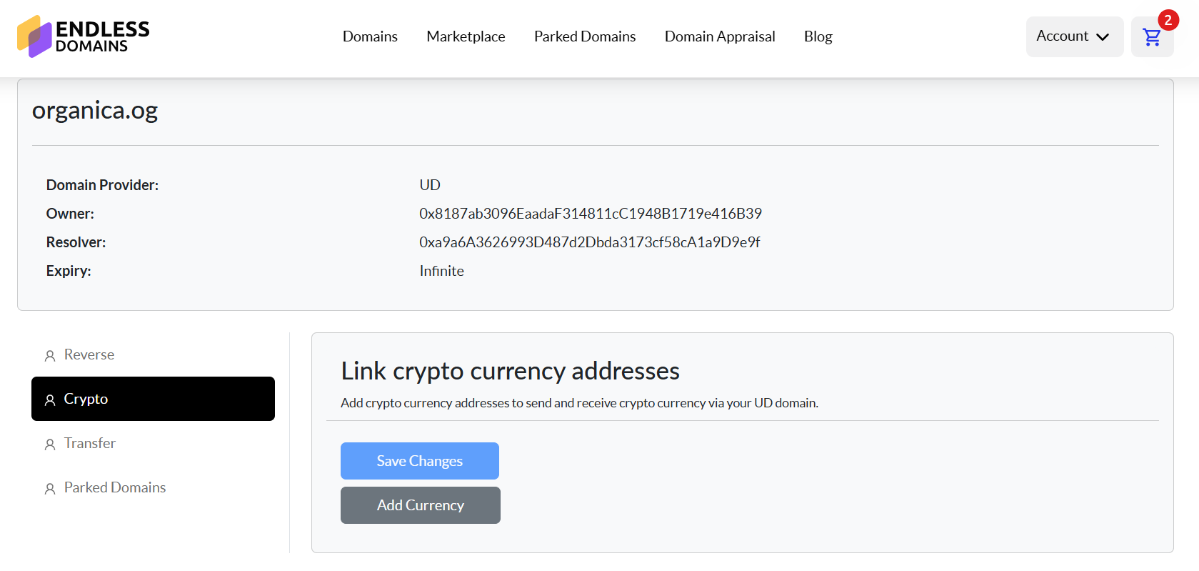 Follow these steps to link your crypto wallet with your domain: