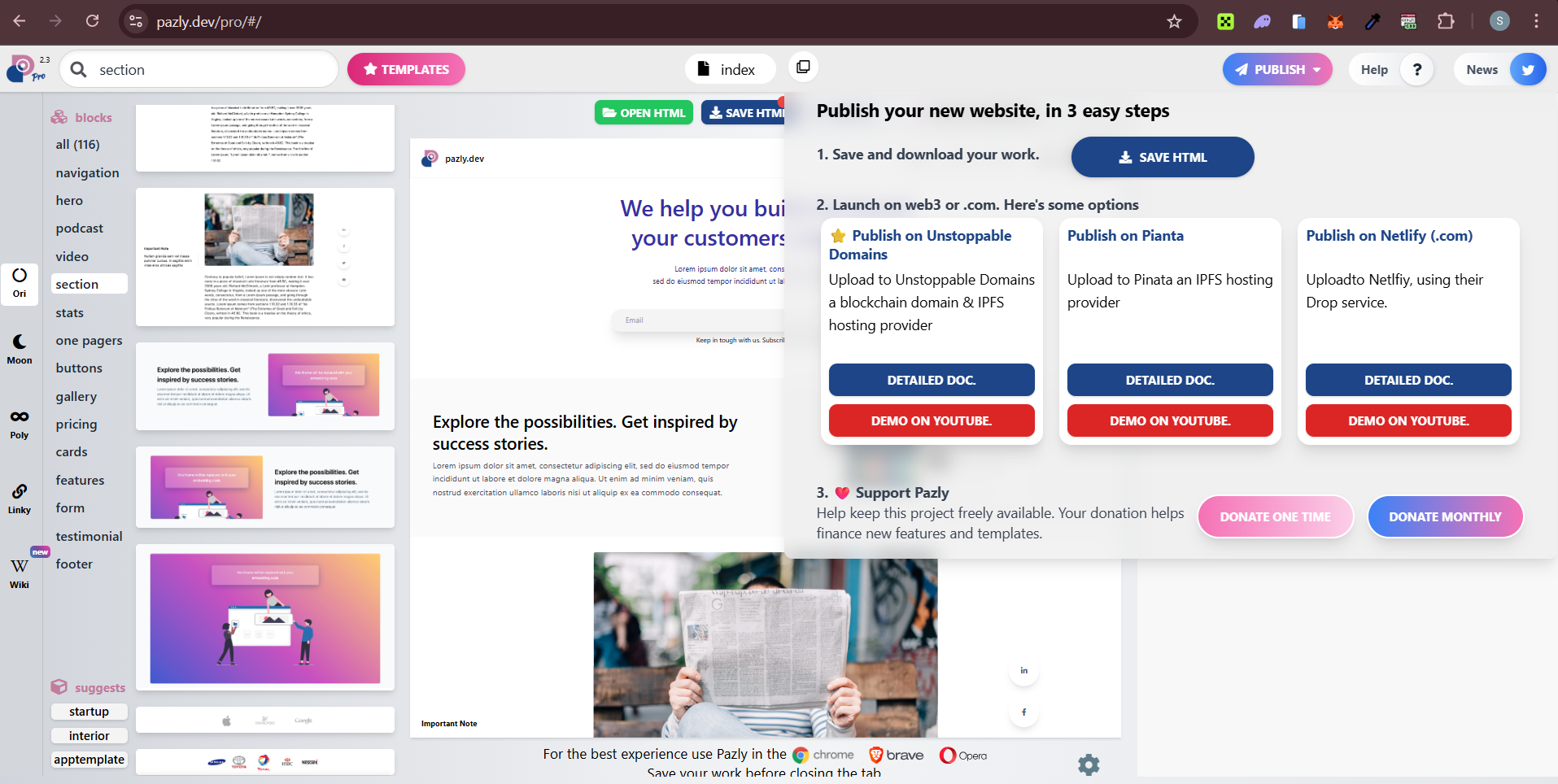If you want to expand beyond a parked profile, you can use Pazly.dev, our dedicated tool that lets you customize and enhance your Web3 domain experience. With Pazly, you can create and showcase your digital identity, link multiple profiles, and manage how your domain appears across the decentralized web, all without traditional hosting steps.