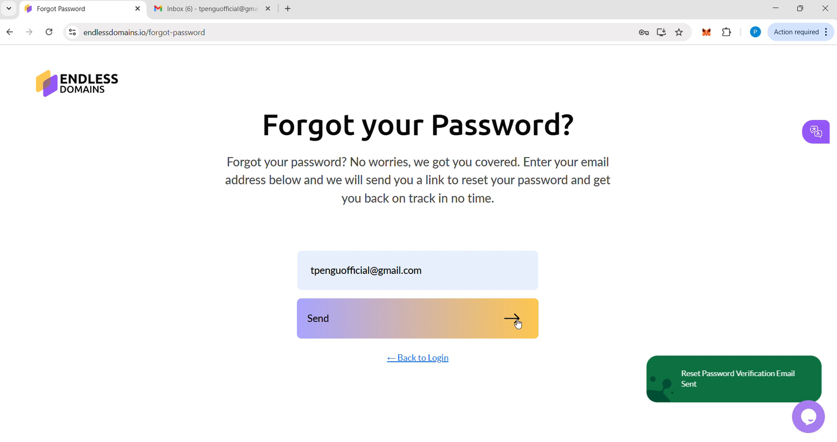 If you encounter any other problems with your account, you can contact the Endless Domains support team at support@endlessdomains.io. Make sure to include your account details and proof of domain ownership so our team can assist you promptly.